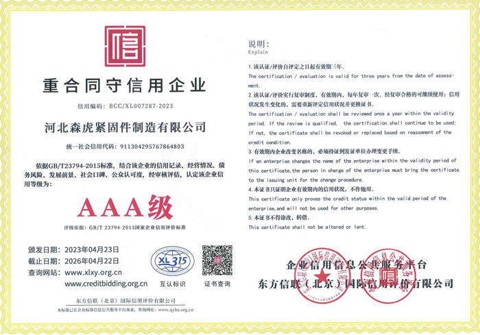 歡迎新老客戶來電垂詢,來廠參觀考察,洽談合作河北森虎緊固件制造有限公司